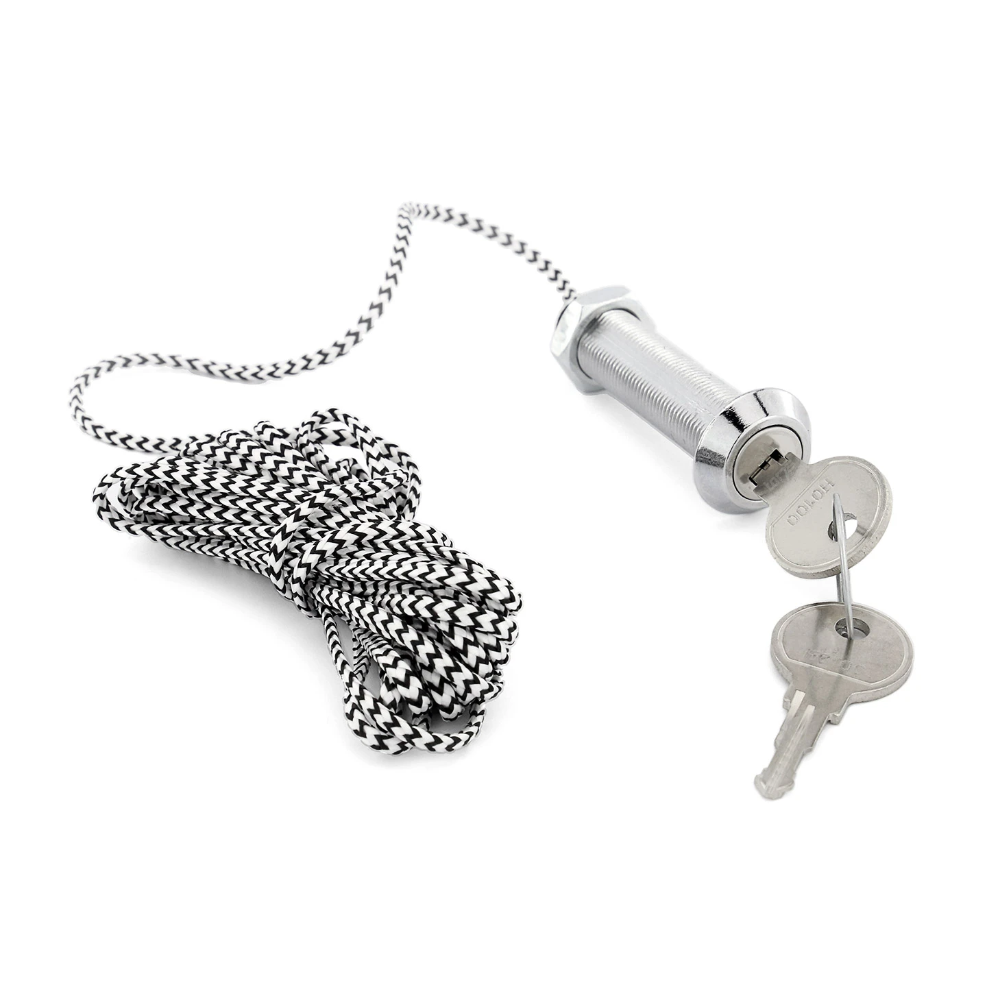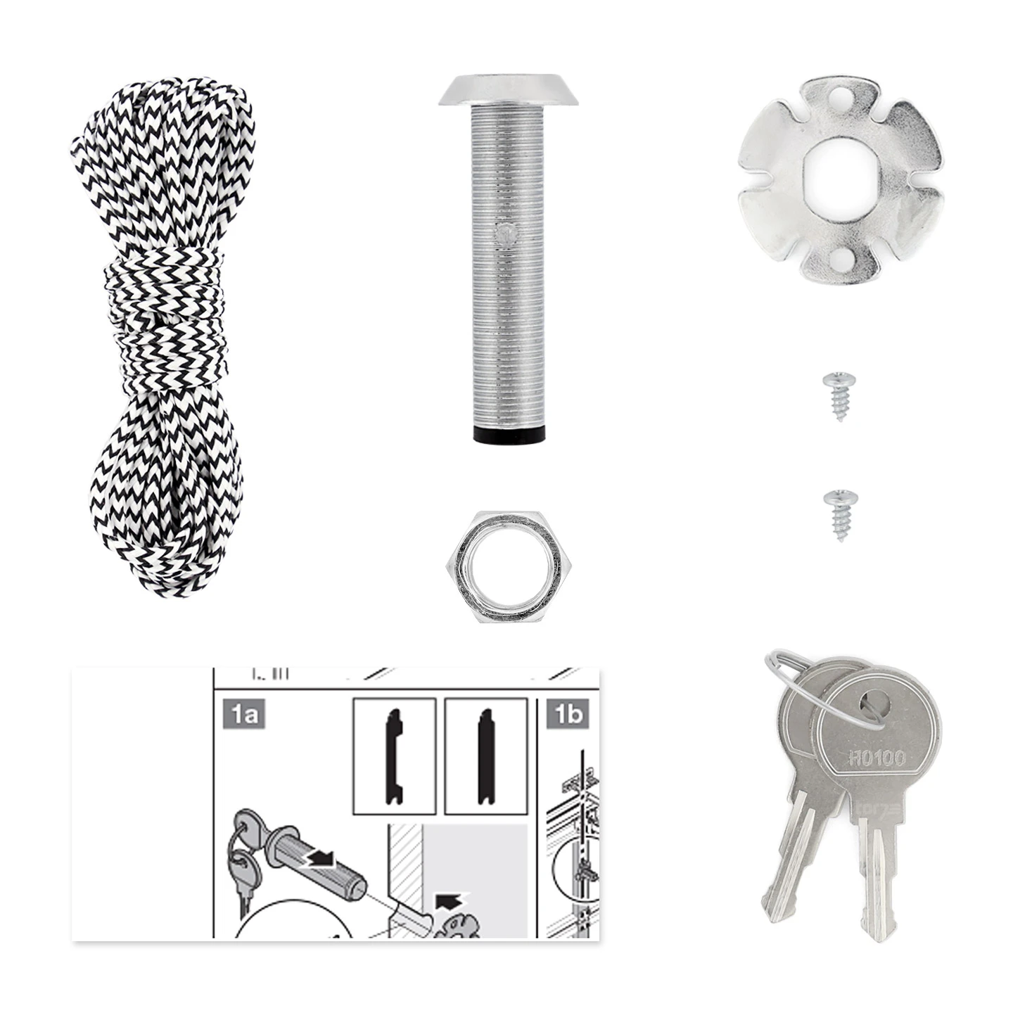 Im Lieferumfang sind ein Rundzylinder, zwei Schlüssel, eine Schlossabdeckung und ein Seil enthalten. Um den Rundzylinder einsetzen zu können, bohren Sie eine Öffnung mit einem Durchmesser von 13 mm in das obere Ende Ihres Garagentors. Den Rundzylinder verbinden Sie anschließend über das kürzbare 3,2 Meter lange Seil mit dem Seil der Notentriegelung an der Antriebsschiene. Nun ist das Schloss über das Zugseilsystem mit der Notentriegelung an Antriebsmotor und Führungsschiene verbunden. Nach dem Herumdrehen ziehen Sie den Schlüssel zusammen mit dem Verbindungsstrang einfach heraus. Auf diese Weise trennen Sie den Motor von der Führungsschiene. Anschließend öffnen Sie das Tor per Hand. Sobald der Strom wieder da ist, betätigen Sie den grünen Schalter am Führungsschlitten und verbinden den Antrieb wieder mit der Schiene.