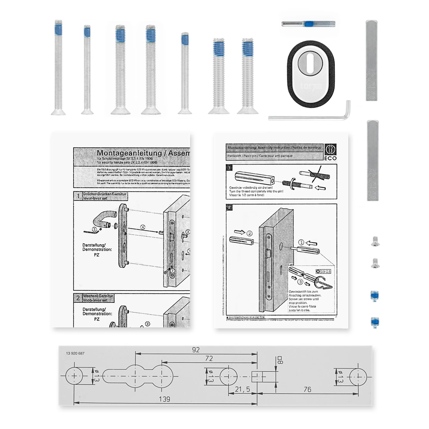 Beschreibung zu Hörmann FS Panikgarnitur D110 Langschild PZ ES2, Alu