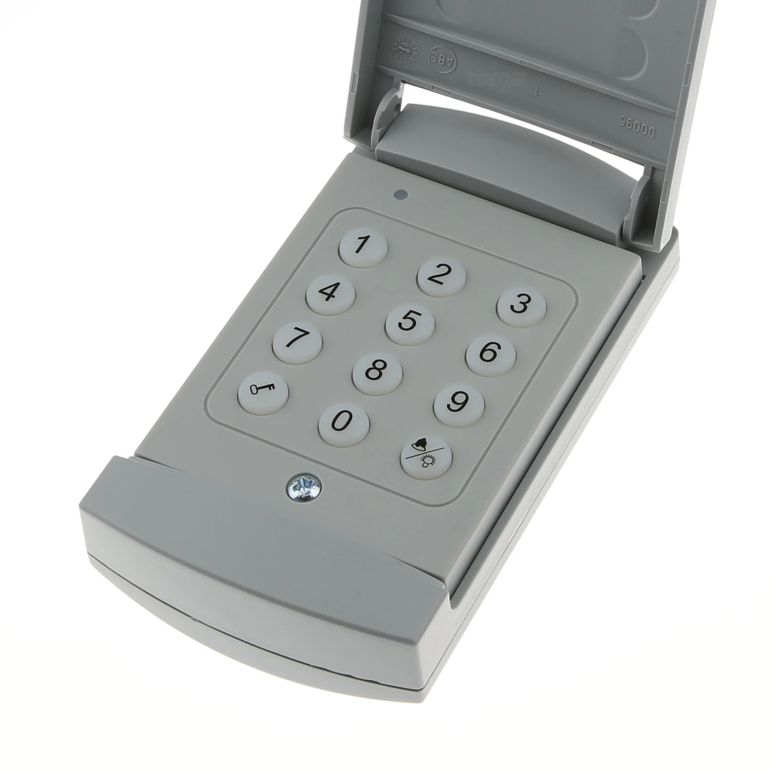 Bis zu 3 Garagentorantriebe lassen sich mit dem Funk-Codetaster RCT 3b steuern. Er funkt mit dem Standard 433 MHz Rolling Code. Somit ist er vornehmlich für die Torantriebe EcoStar Liftronic gedacht. Seine beleuchtete Tastatur ist auch im Dunkeln gut zu bedienen. Die verbaute Klappe schützt die Tastatur vor äußeren Einflüssen. Hierzu zählen Witterung, mechanische Kräfte und Temperatur. Funktionsstörungen durch Staub und anderen Schmutz beugt sie ebenso vor.