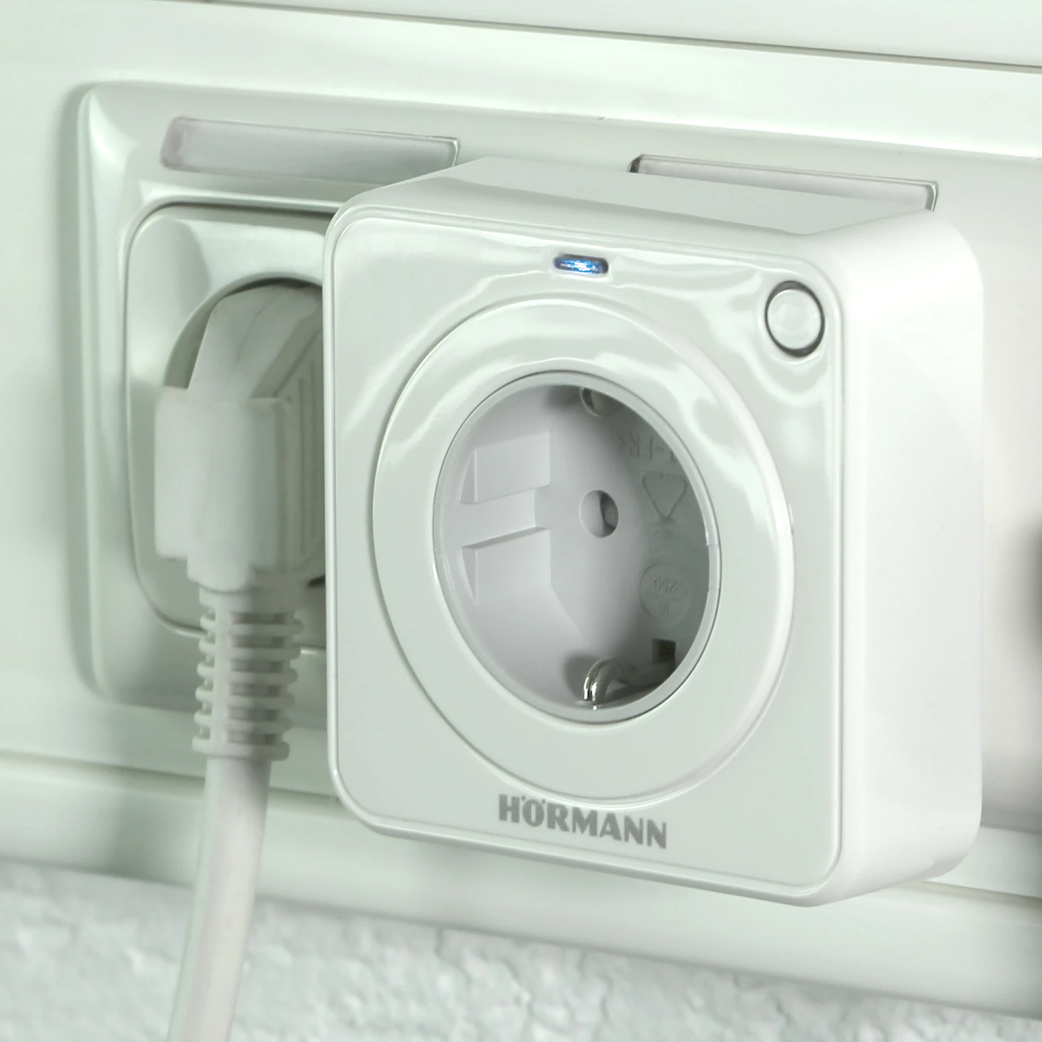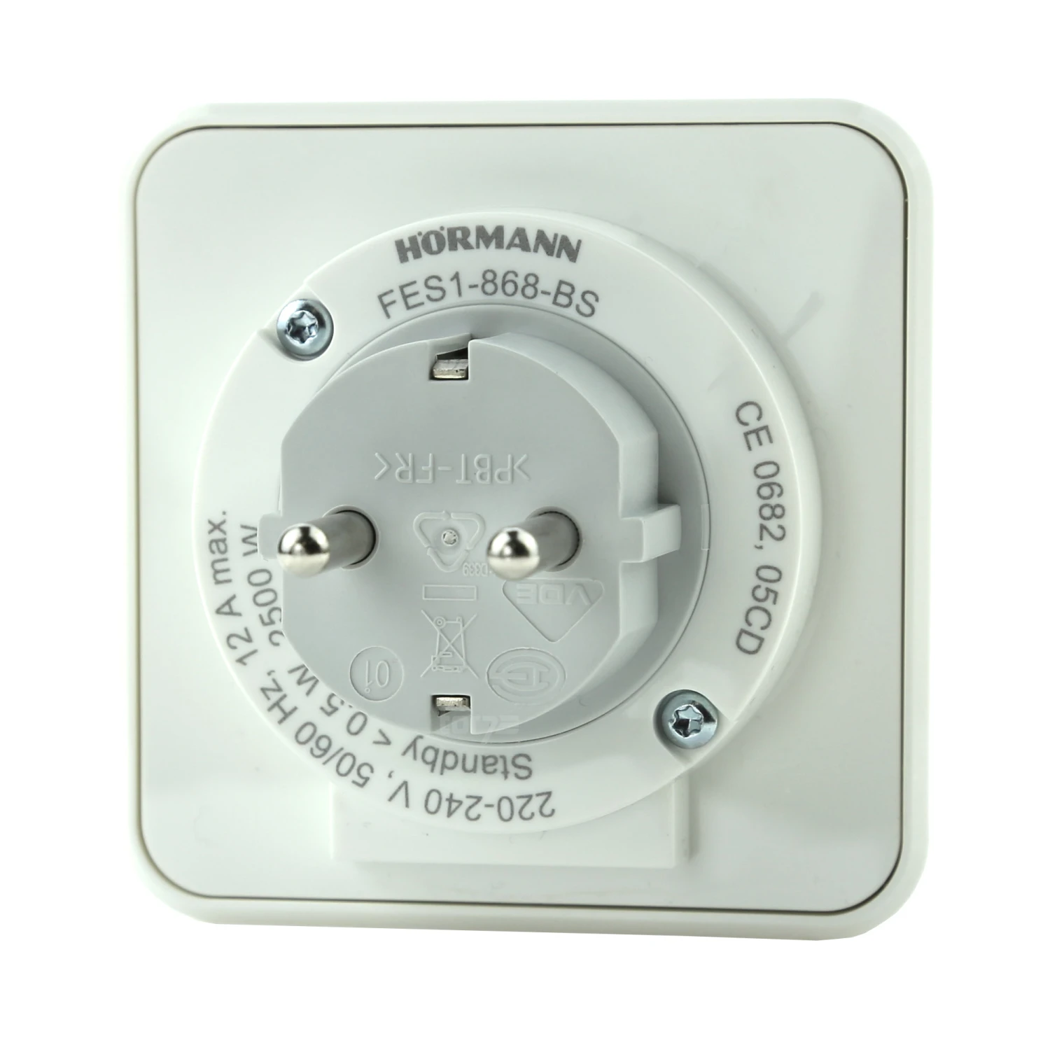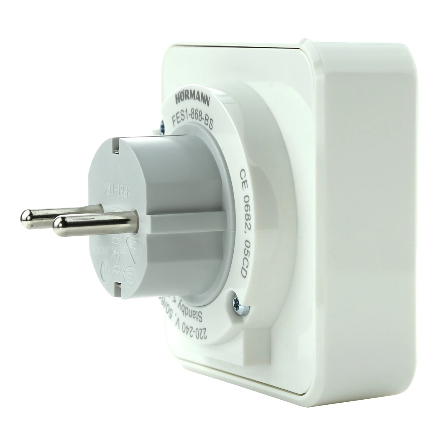 Die Funksteckdose FES 1 868 MHz BiSecur (868-BS) von Hörmann hat einen bidirektionalen Empfänger zum Ein-und Ausschalten von Licht oder anderen Geräten. Dabei wird über den Relaisausgang (230 V) die Stromversorgung hergestellt oder unterbrochen. Das Relais kann mit einem geeigneten Funksender oder manuell über eine kleine Bedientaste direkt an der Steckdose geschaltet werden (nur Kanal 1). Insgesamt stehen drei Kanäle für die Ansteuerung per Funk zur Verfügung.