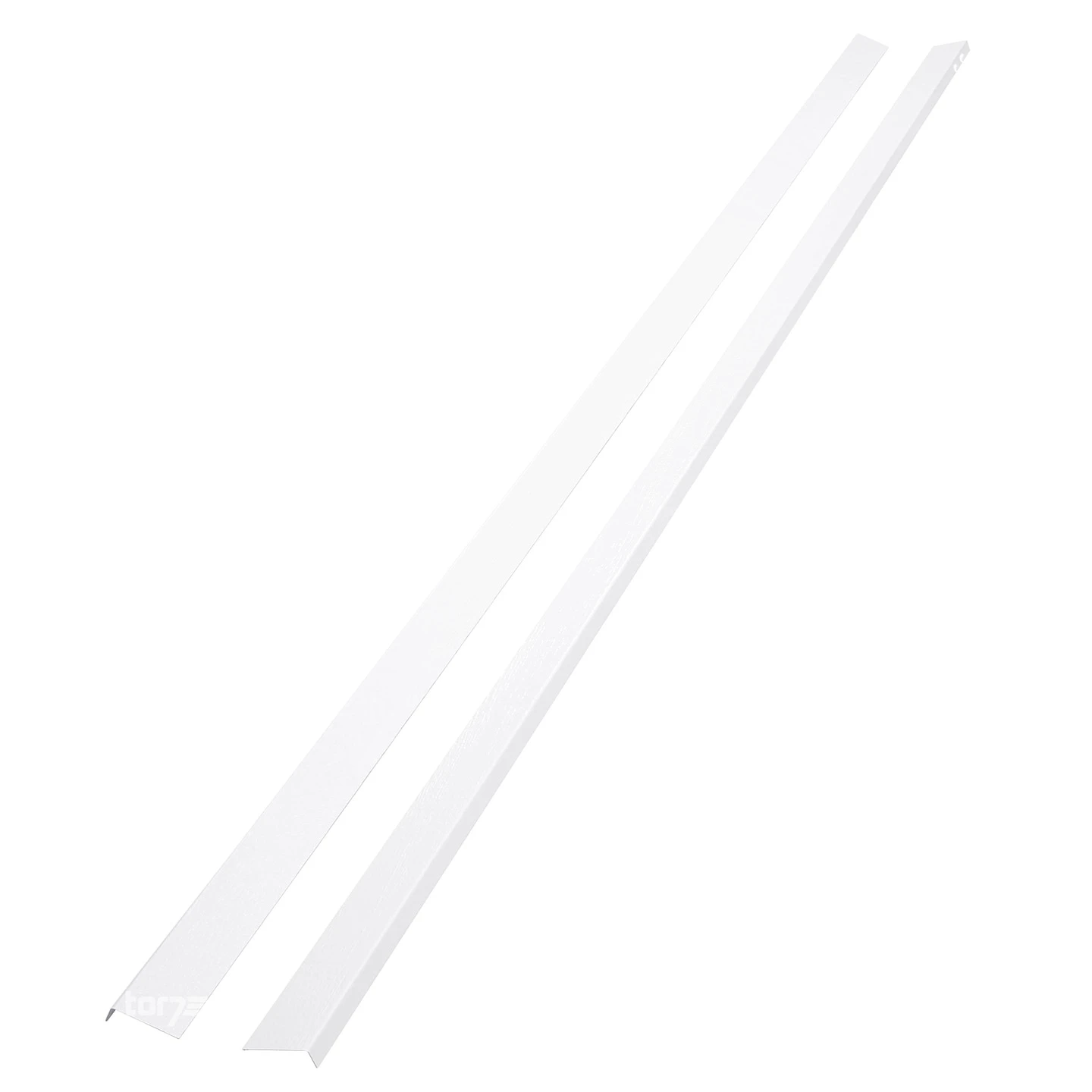 Zargen können beim Einbau sichtbar sein. Da die seitlichen Zargen ab Werk in der Oberfläche Woodgrain und im Farbton RAL 9016 Verkehrsweiß geliefert werden, wären somit weiße Stellen zu sehen. Das kann störend sein, wenn das Garagentor eine andere Farbe besitzt. Abhilfe schafft die Zargenverkleidung. Die aus verzinktem Stahlblech gefertigten Winkelbleche werden auf den seitlichen Zargen mit dauerelastischem Klebstoff verbunden. Lieferbar ist das Set Zargenverkleidung in der 55 mm breiten Ausführung für die Abdeckung bei sichtbaren Teilbereichen oder auch als 90 mm breite Ausführung zur kompletten Abdeckung der Zarge.