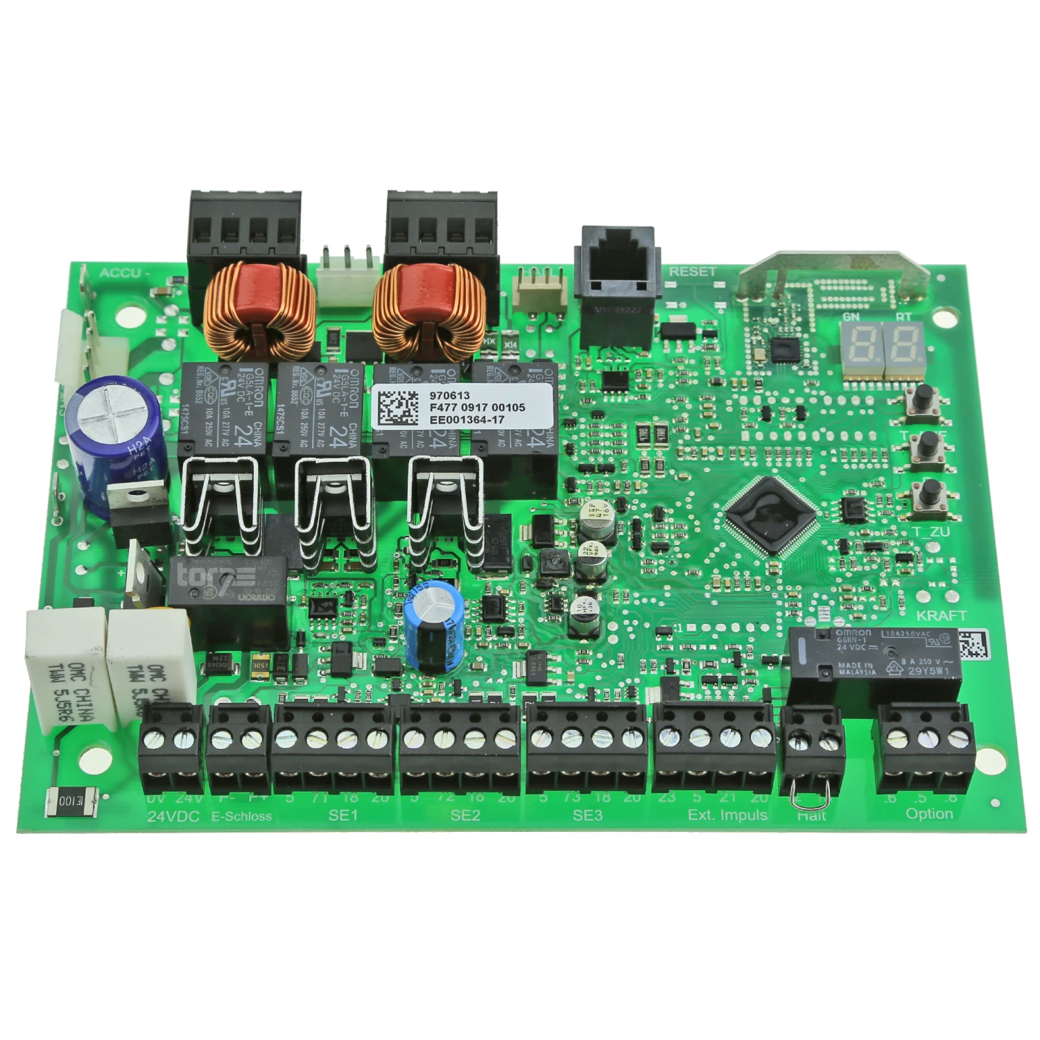 Diese Hörmann Steuerungsplatine mit 868-MHz-BiSecur-Funkempfänger ist als Ersatzteil für alle VersaMatic Antriebe geeignet sowie für alle RotaMatic Antriebe, die ab dem 01.03.2017 produziert wurden. Man erkennt diese Antriebe daran, dass ein interner Empfänger vorhanden ist und an der menügeführten Programmierung über die doppelte 7-Segment-Anzeige.
