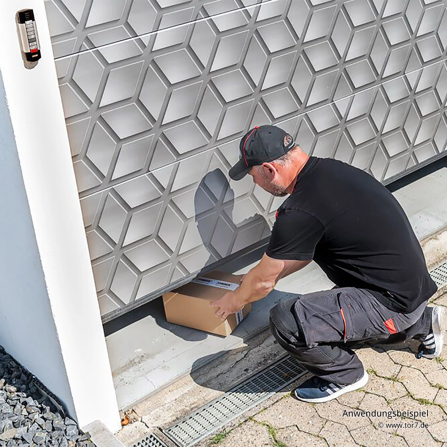 Die spezielle Sonderfunktion des SOMMER Handsender Telecody Courier, weiß ist dessen Paketablagefunktion, die es so nur beim Modell Courier und nicht beim Telecody+ gibt. Sie können mit Hilfe dieser Funktion Ihre Garage ganz einfach als Ablageort für bestellte Sendungen nutzen, indem Sie den Zusteller einen begrenzten Zugang gewähren. So müssen Sie nicht mehr befürchten, bei Abwesenheit ein Paket zu verpassen, da der Zusteller es in ihrer Garage platzieren kann. Hierfür ist es möglich, zwei- bis achtstellige Paketablagecodes zu programmieren, die Sie hinterher an Ihren Zustelldienst übermitteln. Der Zusteller braucht dann nur noch den Code eingeben und das Garagentor fährt in die zuvor eingestellte Öffnungshöhe auf, sodass er das Paket hineinlegen kann. Nach Ablauf einer Aufhaltezeit von 15 Sekunden fährt das Tor wieder von allein zu und Ihre Sendung ist vor Diebstahl geschützt. Es besteht allerdings auch die Möglichkeit, auf den Paketablagecode zu verzichten. In diesem Fall müsste der Zusteller nur die rote Taste betätigen, um die Paketöffnung herbeizuführen. Hier ist aber eine gewisse Vorsicht geboten, da so auch jeder andere das Tor in entsprechende Öffnungshöhe fahren könnte.