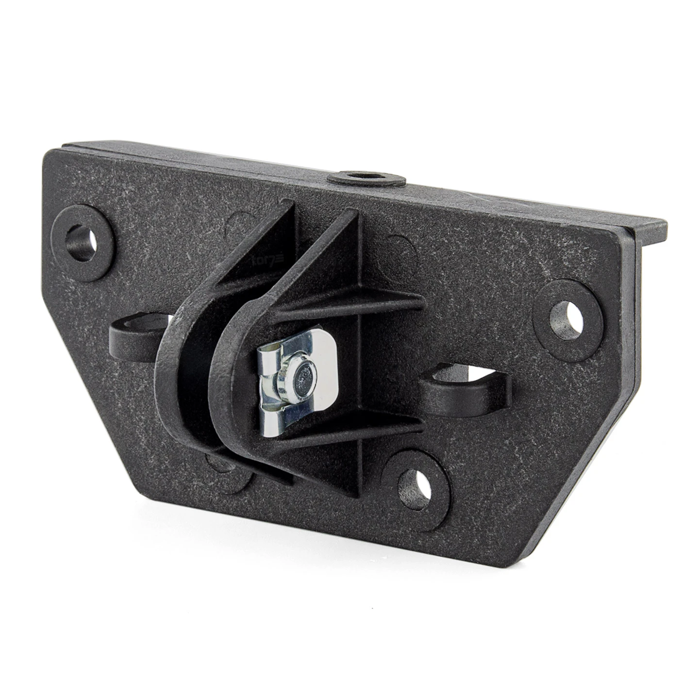 Bei dem Befestigungswinkel handelt es sich um ein stabiles Kunststoffteil, das oben an der obersten Torlamelle angebracht wird. Darauf befinden sich zwei nah gegenüberliegende Laschen, durch welche sich der 8-mm-Bolzen hindurchziehen lässt. Hieran erfolgt die Befestigung des Schubarms oder Mitnehmergalgens vom Torantrieb. Mit dem Teckentrup Befestigungswinkel Deckenschlepper, vormontiert ist der Torantrieb also erst in der Lage, seine Kraft auf das Torblatt einzuwirken.